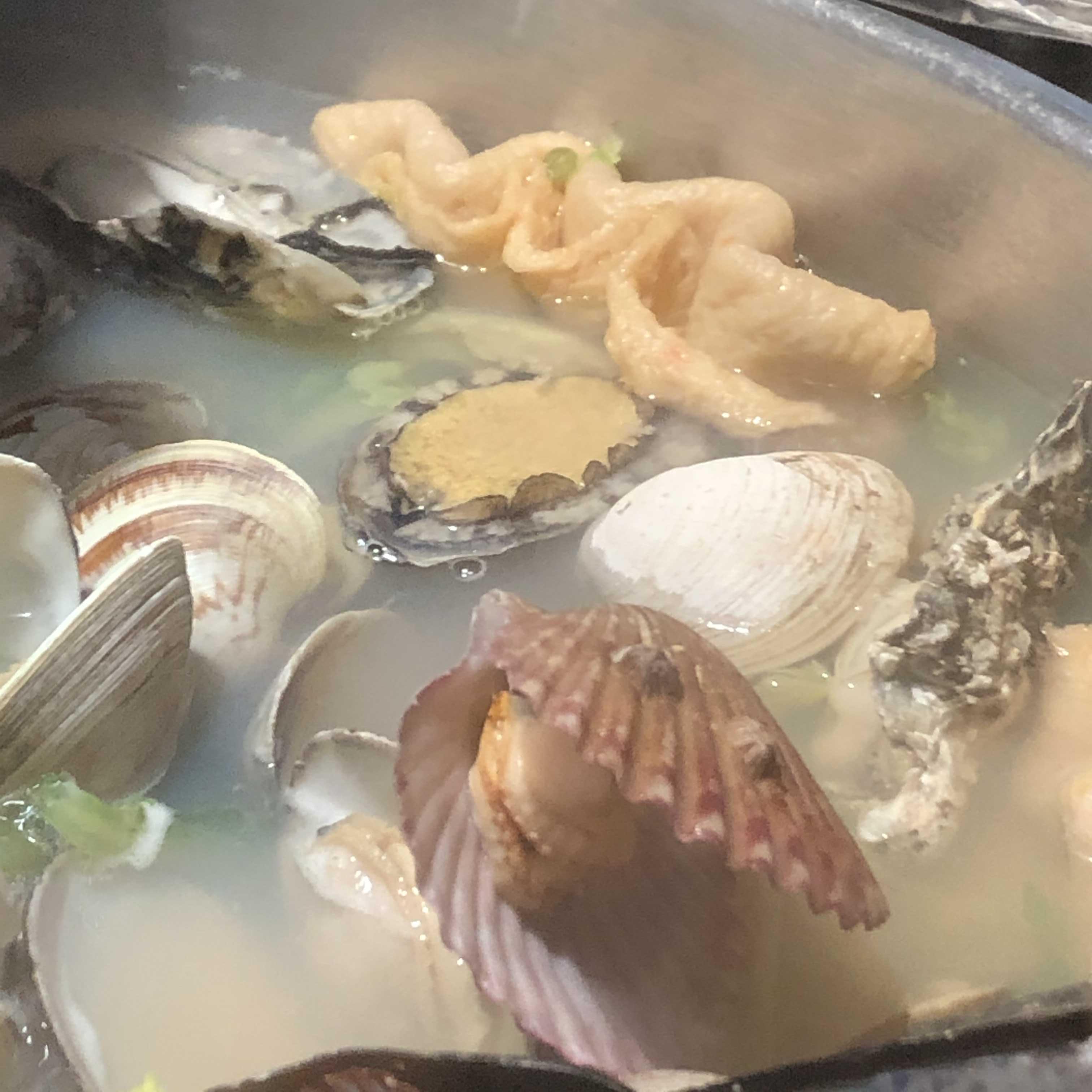 오징어 백합 어묵 굴 전복 양배추 버섯 바지락